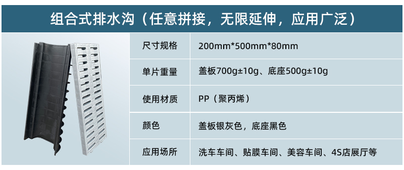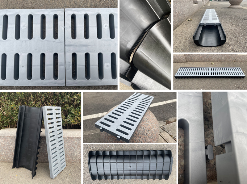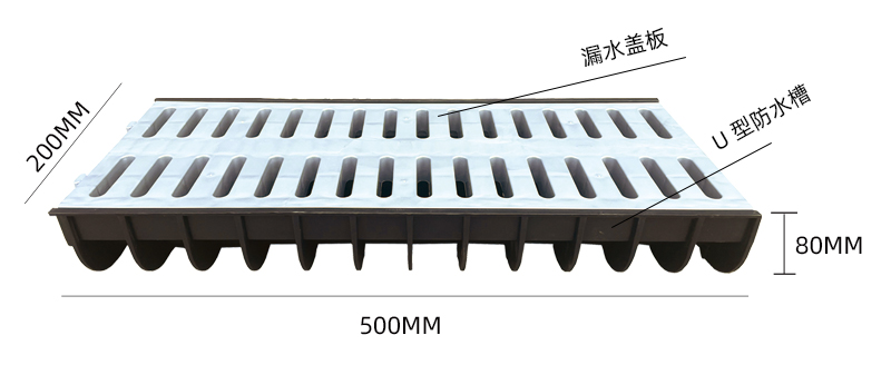 1. 雙層結構,分體設計,蓋板可單獨使用。 2. 排水槽內壁光滑,不存泥,好排水 3. 免防水,接口處打防水膠后徹底防漏水。 4. 克重大,用料足,堅固耐用 5. 大承載,可以上5噸以內的車輛。 6. 質保二年,斷裂等無法使用情況免費更換 7. 施工方便,節省人工。 8.任意拼接,無限延伸,應用廣泛