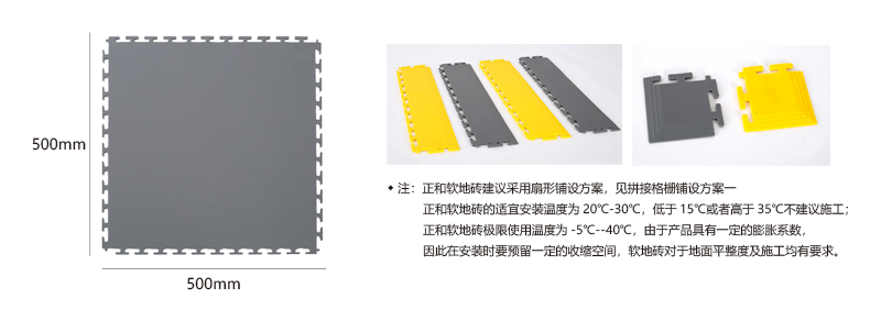 軟質絕緣地板能夠將每個獨立的地板快速拼裝成整體地面,專利型鎖扣結構連接能力更強,可承受叉車的來回碾壓。施工過程中無需膠黏劑等材質,具有施工簡單快速、色彩絢麗、美觀大方、可移動性強、可重復使用等特點。