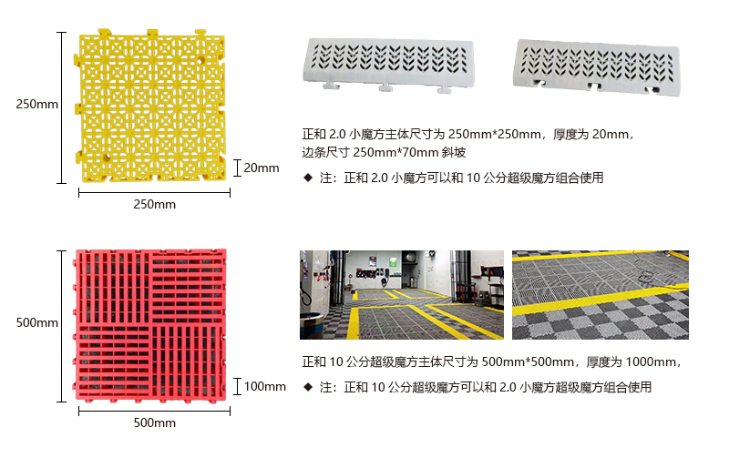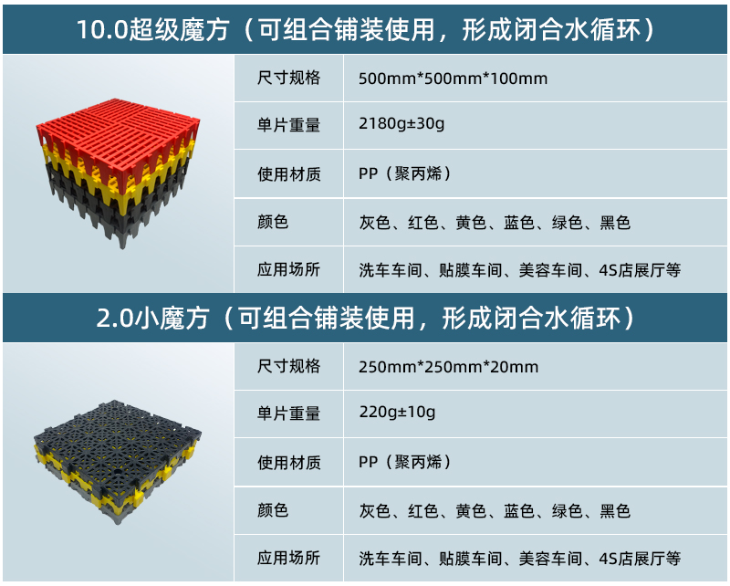 10公分終極魔方(50*50*10CM)與2.0小魔方(25*25*2CM)可組合鋪裝使用,形成閉合水循環